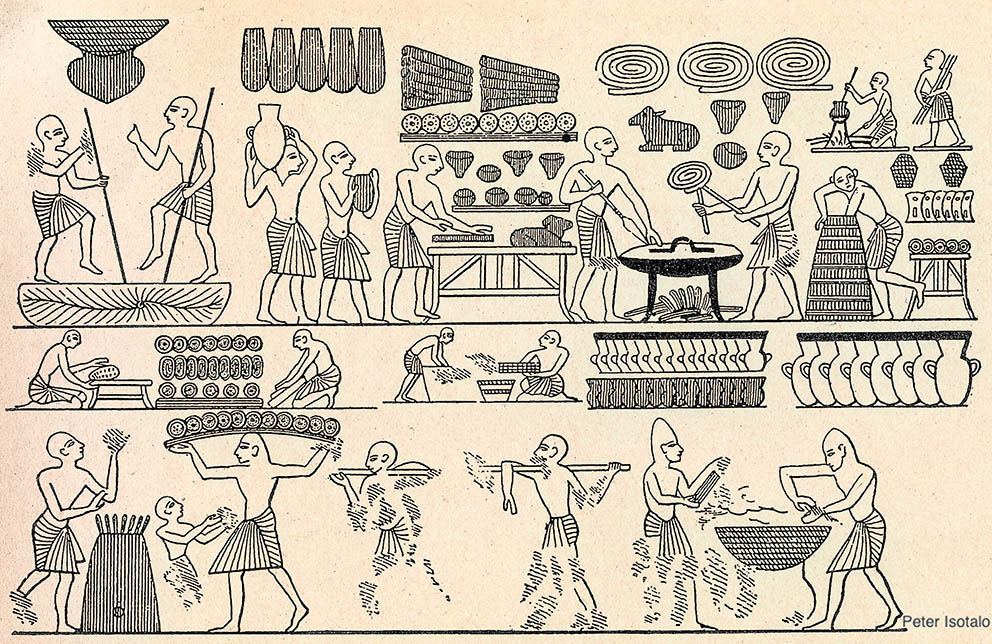 El pan junto a una especie de cerveza o bebidas fermentadas por semillas de cebadas podrían ser los primeros platos “cocinados” de los que de momento tenemos presencia, junto con animales preparados al fuego para ablandarlos o secados para conservarlos.